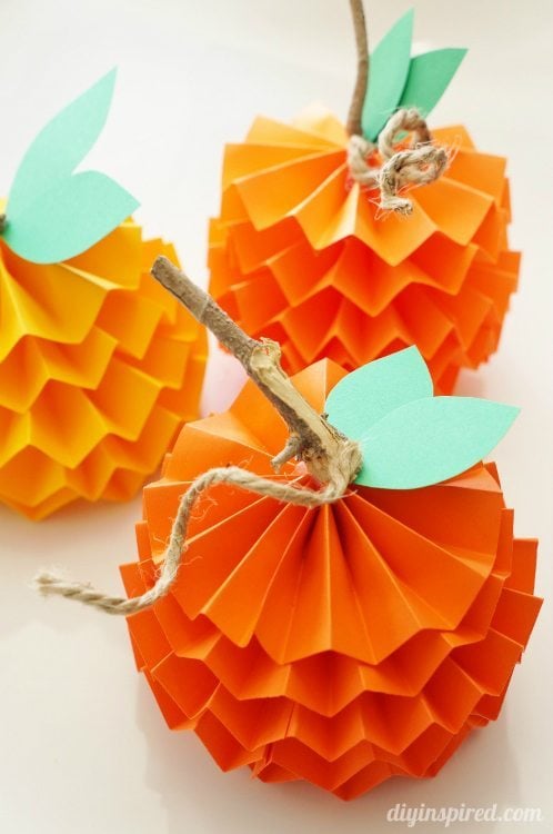 K práci si přichystejte barevné čtvrtky papíru, tavnou pistoli, oboustrannou lepicí pásku,nůžky a sisalový provázek. Toť vše, s těmito dýněmi se nikdo moc dlabat nebude ?.